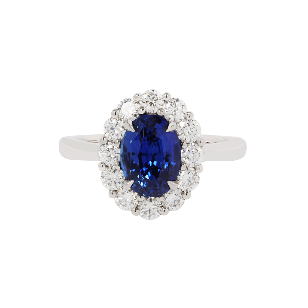 Handcrafted in New York City for our exclusive Gleim Collection, this ring features an exquisite oval Ceylon sapphire that is surrounded by ideal-cut, round diamonds in a Platinum setting. Celebrate life’s milestones in style by investing in exquisite, collectible, natural gemstones.