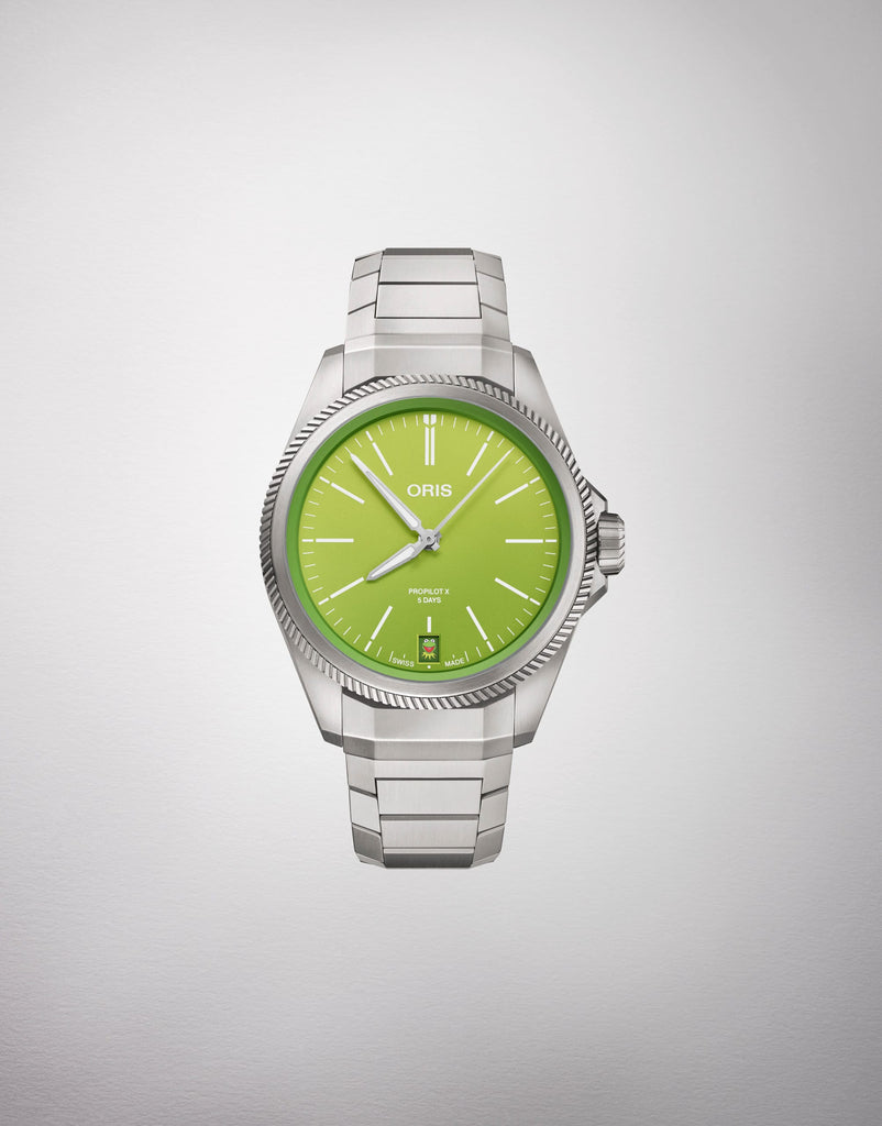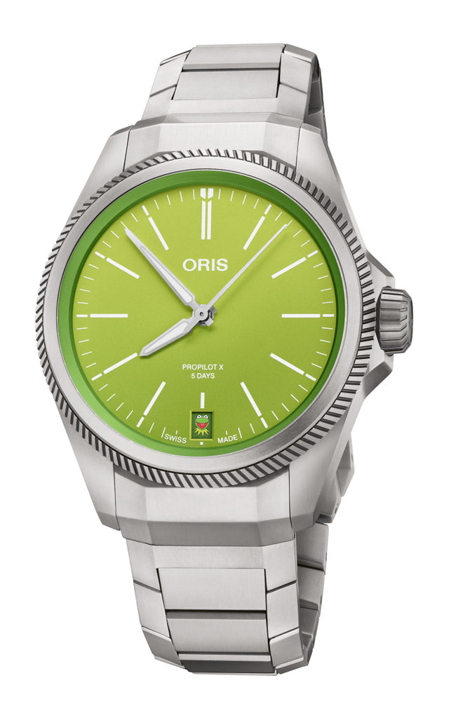 Bring a little Muppet magic into your life with the Oris ProPilot X Kermit Edition watch, a vibrant collaboration with Disney's beloved Kermit the Frog! This limited edition timepiece features a frog-green dial, a nod to Kermit's iconic style, and a special appearance by the Muppet star himself in the date window on the first of every month, reminding you to take a breather and find your smile. Powered by the high-performance Calibre 400 movement, this titanium watch is not only a stylish statement but also a reliable companion for your busiest days. Embrace the Kermit way of life and make time for joy with the Oris ProPilot X Kermit Edition watch, a true collector's item for those who embrace whimsy and want to add a little playfulness to their everyday lives!